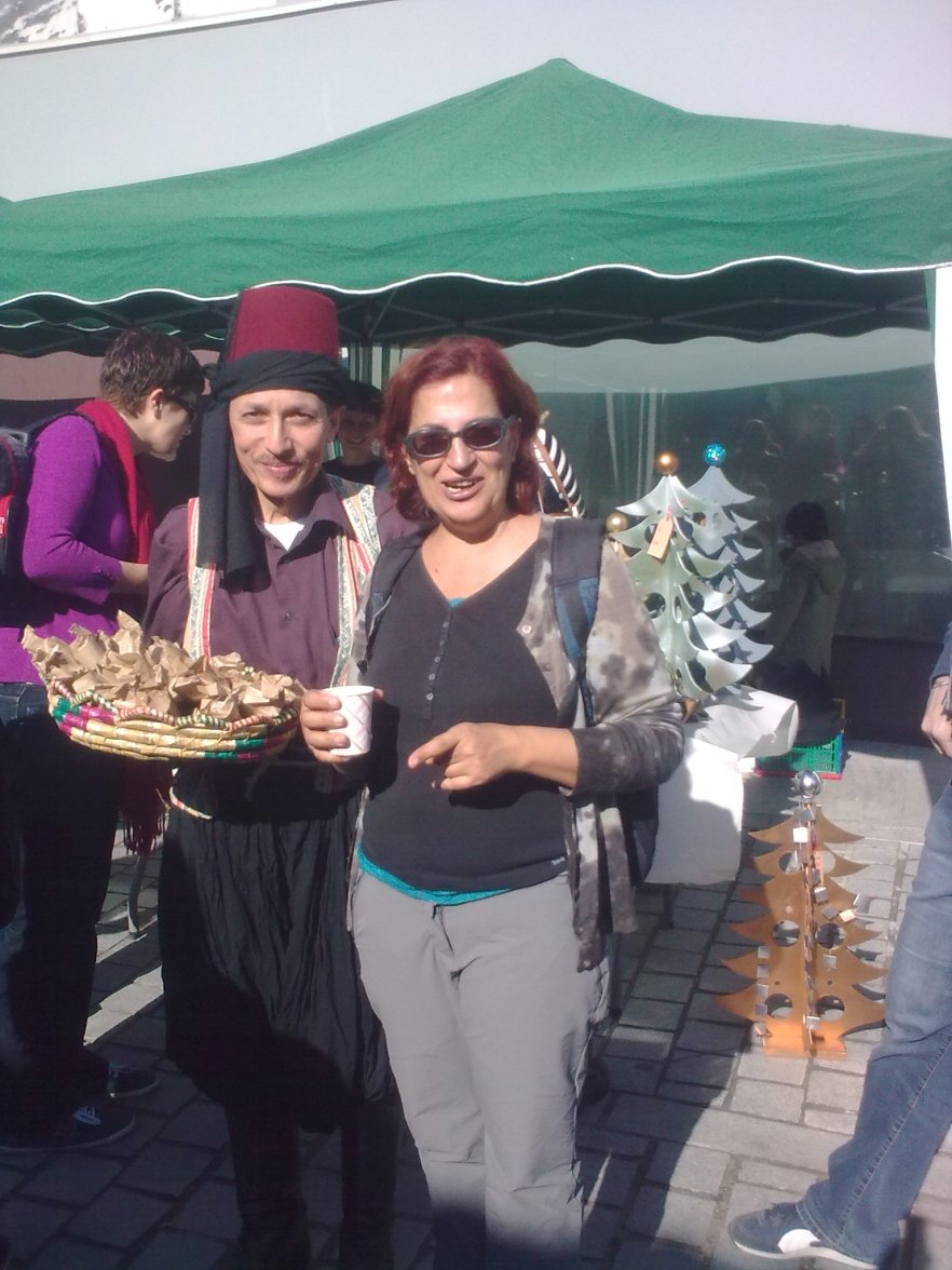 Walk-Leader-at-1900-feast-with-vendor-Gerard Published December 20, 2015 at 1536 × 2048 in An Enlightening Stroll in Old Nicosia – 20 Dec. 2015 ← Previous our walk leader at a reenactment of 1900 period, with street vendor Gerard