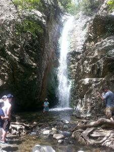 A spectacular sight greeted the Strollers below the picturesque village of Platres on Saturday, 13 May. The Myllomeris waterfall is apparently the tallest in Cyprus with a 15 metre drop, and its effect on us was mesmerizing and awe-inspiring. Some Strollers stood on the bridge, others perched on rocks and tree trunks, but everyone’s eyes were riveted on the tumbling, sparkling iridescence falling into a clear pool below. There was such joy and energy in that body of water cascading down the rocks!